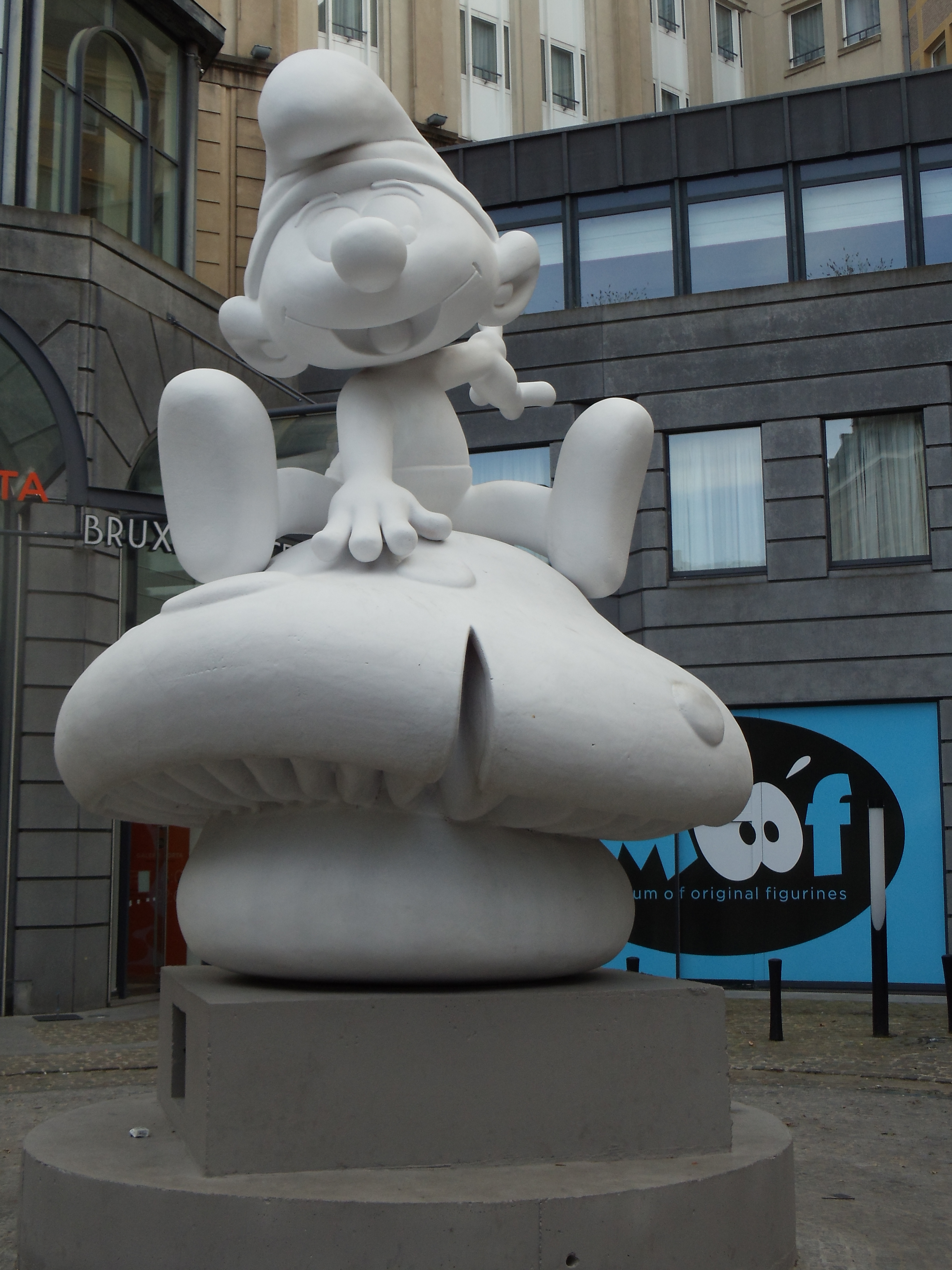 Michelle and I went on a little expedition. We went to have fries in the reputably best place in Brussels (it was pretty damn good), took pictures by two statues whose names I didn’t exactly get… We found a huge smurf statue! And along with that statue, we uncovered the only smurf store in the entire world! It was only opened three months ago and though I was really tempted to get something from there, I thought about who the recipient of my gift would be (probably my brother), but that he’s too old. A picture will suffice! Next to the store was a comics museum! But it was closed. 😦