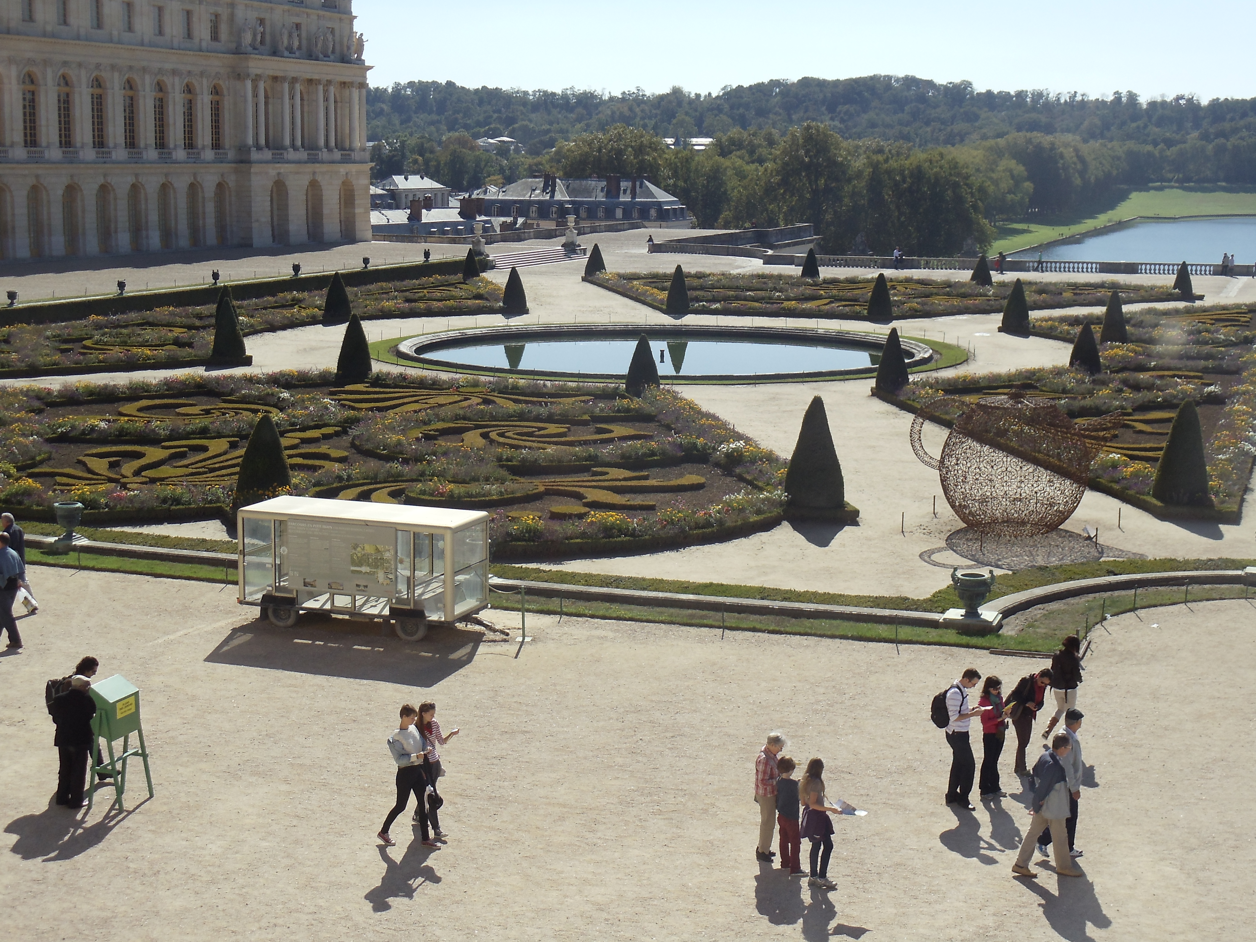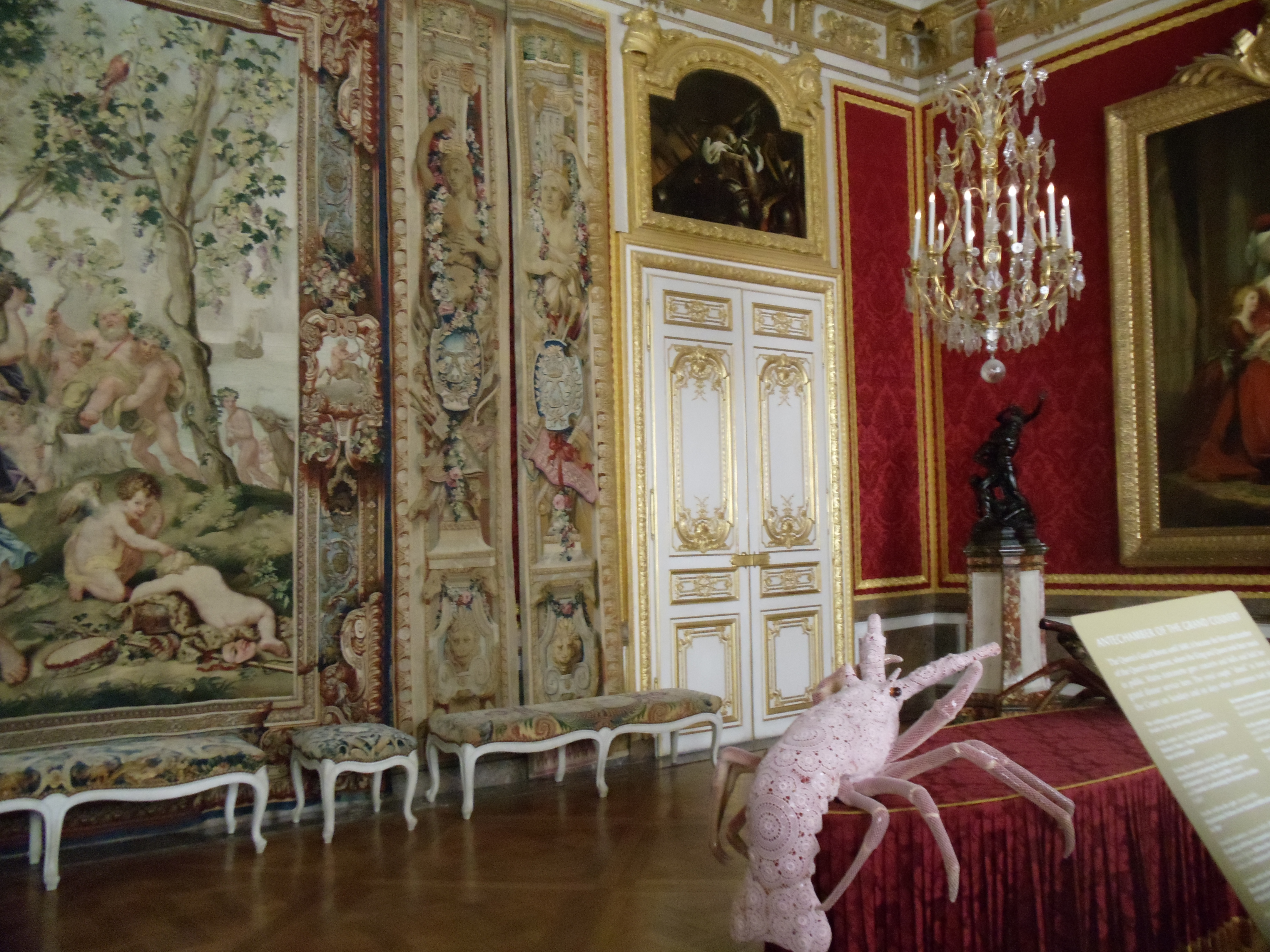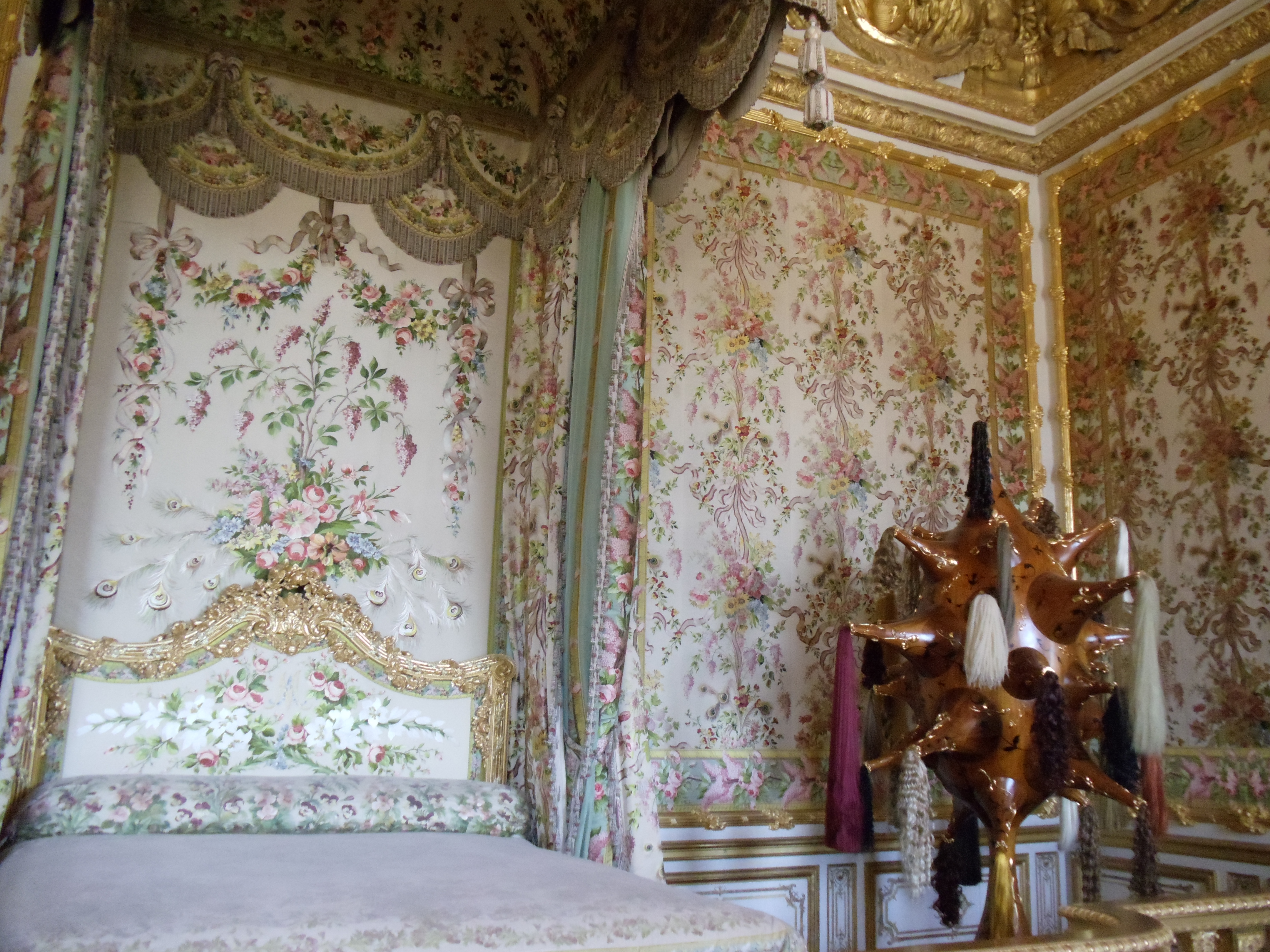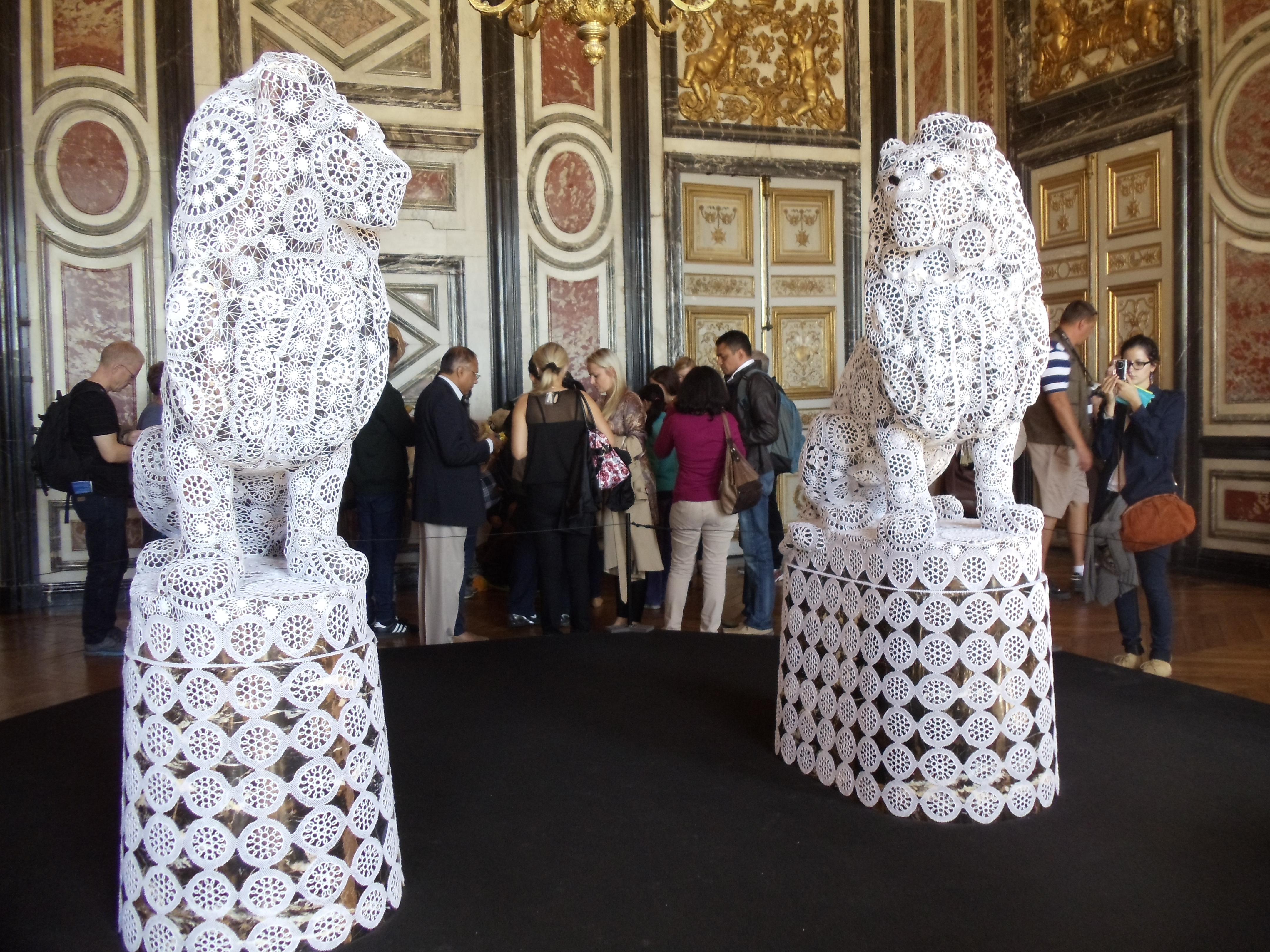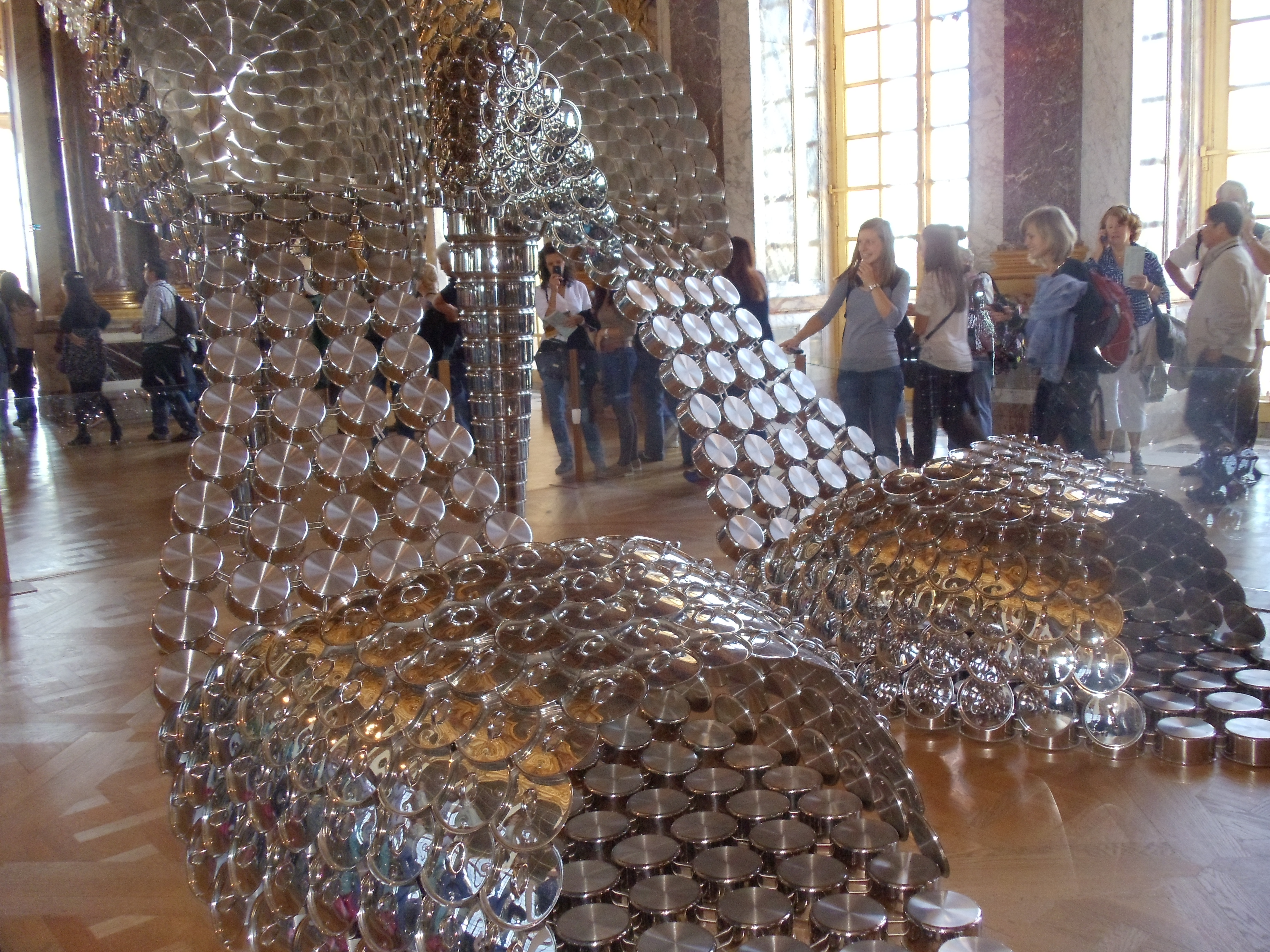 I’d like to think that I impart just a little bit of knowledge on viewers with every post. Here’s my little bit of info. The museum of Versailles recognizes that because they cannot change their exhibitions–like all museums have permanent exhibits and temporary ones–their visitors would be receiving the same experience every time they came to Versailles. In other words, visitors needed something new to look forward to. Here’s where modern art comes in. From what I’ve gathered, every year, the museum invites modern artists to display their sculptures around the palace and in sections of the gardens. This year it was Joana Vasconcelos, a French-born Portuguese woman, the first ever woman to land the Versailles slot! The article to prove it: http://www.cbc.ca/news/arts/story/2012/06/18/versailles-art.html. I took pictures of some of the sculptures but I wish that the quality of the photos was higher! May I remind you that we were breezing through everything… I thought it’d be cool if you took a look at all of the sculptures she’s displayed in Versailles, found here: http://www.vasconcelos-versailles.com/en/index.php?id=01. I’ve labelled my photos with the titles of all of her works as much as I could, too.
