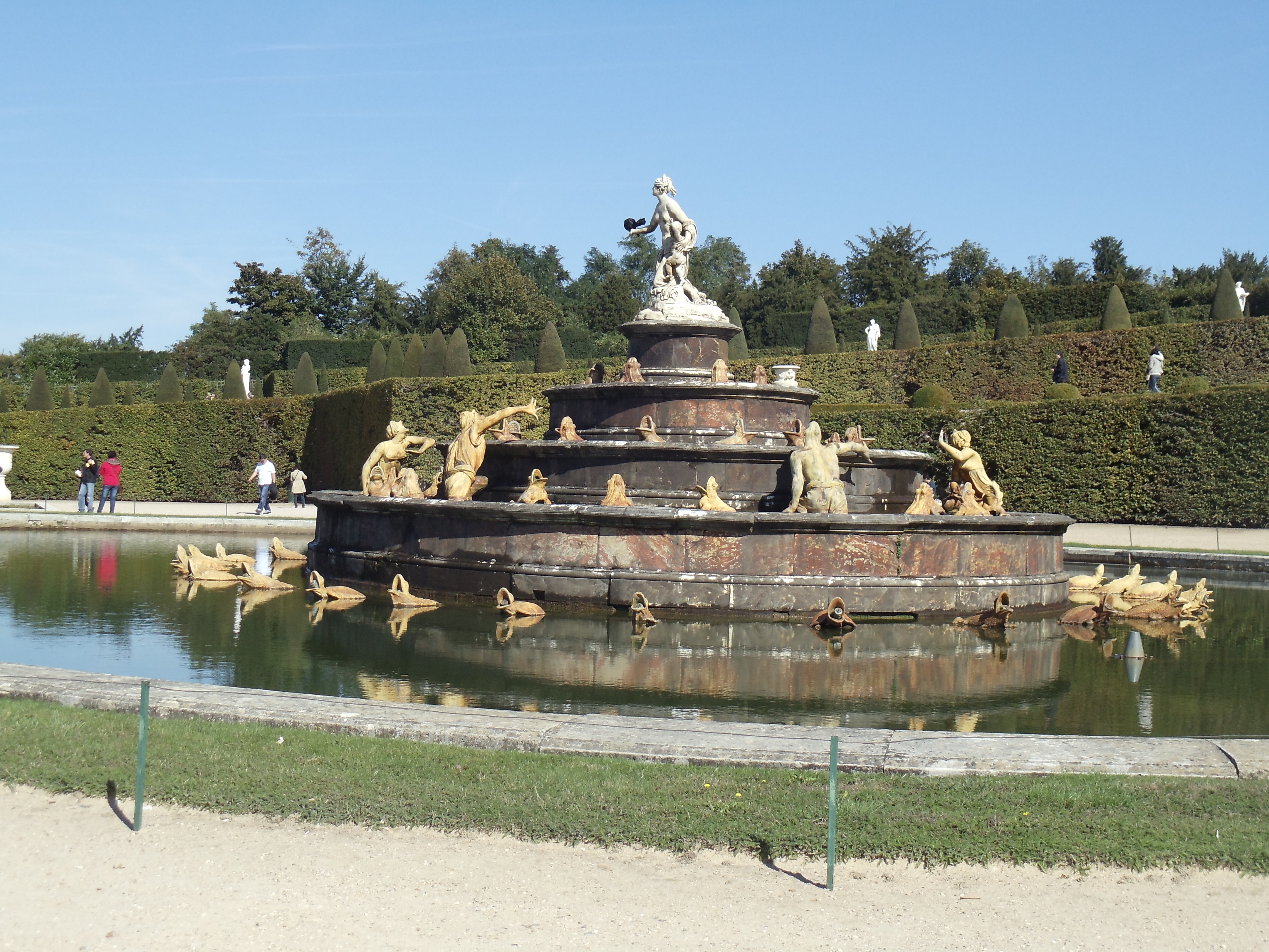We saw everything. Even the fountain music show that came on at 3:30 PM on the dot. You may notice that in the beginning of the gallery, the pictures shown of the fountains displays them as not being on. That is because they turn them on for thirty minutes between 15:30 and 16:00 while playing Baroque music through loudspeakers which I recognized as Lully’s compositions. We saw Le Petit Trianon, Le Grand Trianon, Le Grand Canal, La Pièce d’Eau des Suisses, and of course, the Château. I’ve tried to label the photos as much as I could, but I’ve already provided you with the reason behind why I don’t quite know the name of everything…