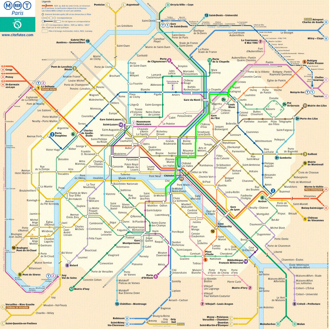 Observe the route we took to St. Michel (the meeting place) with some students from the hostel: