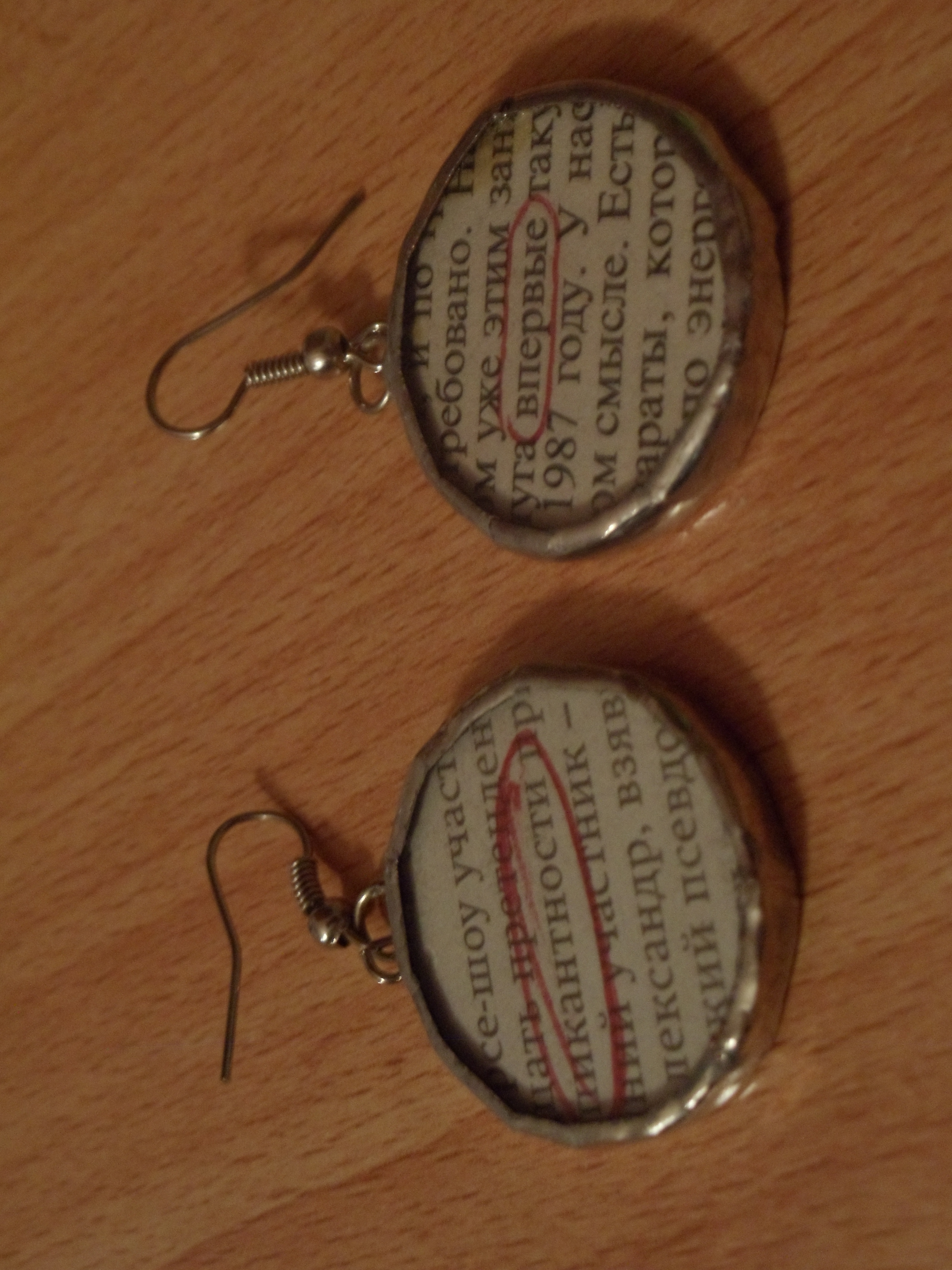 8. Dangle earrings of Russian newspaper clippings – from Anoush and Tiko