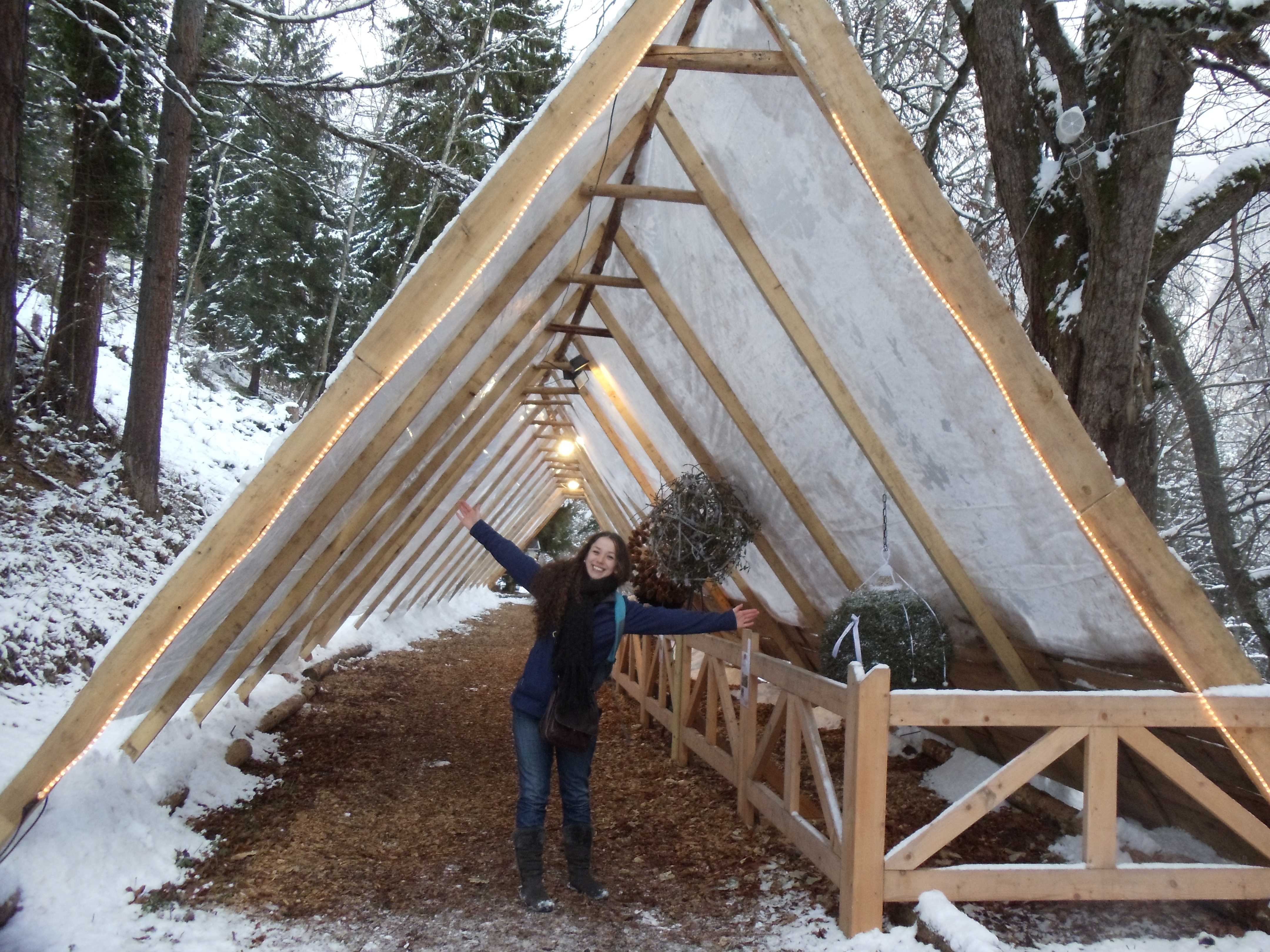 Madeleine posing under a tent