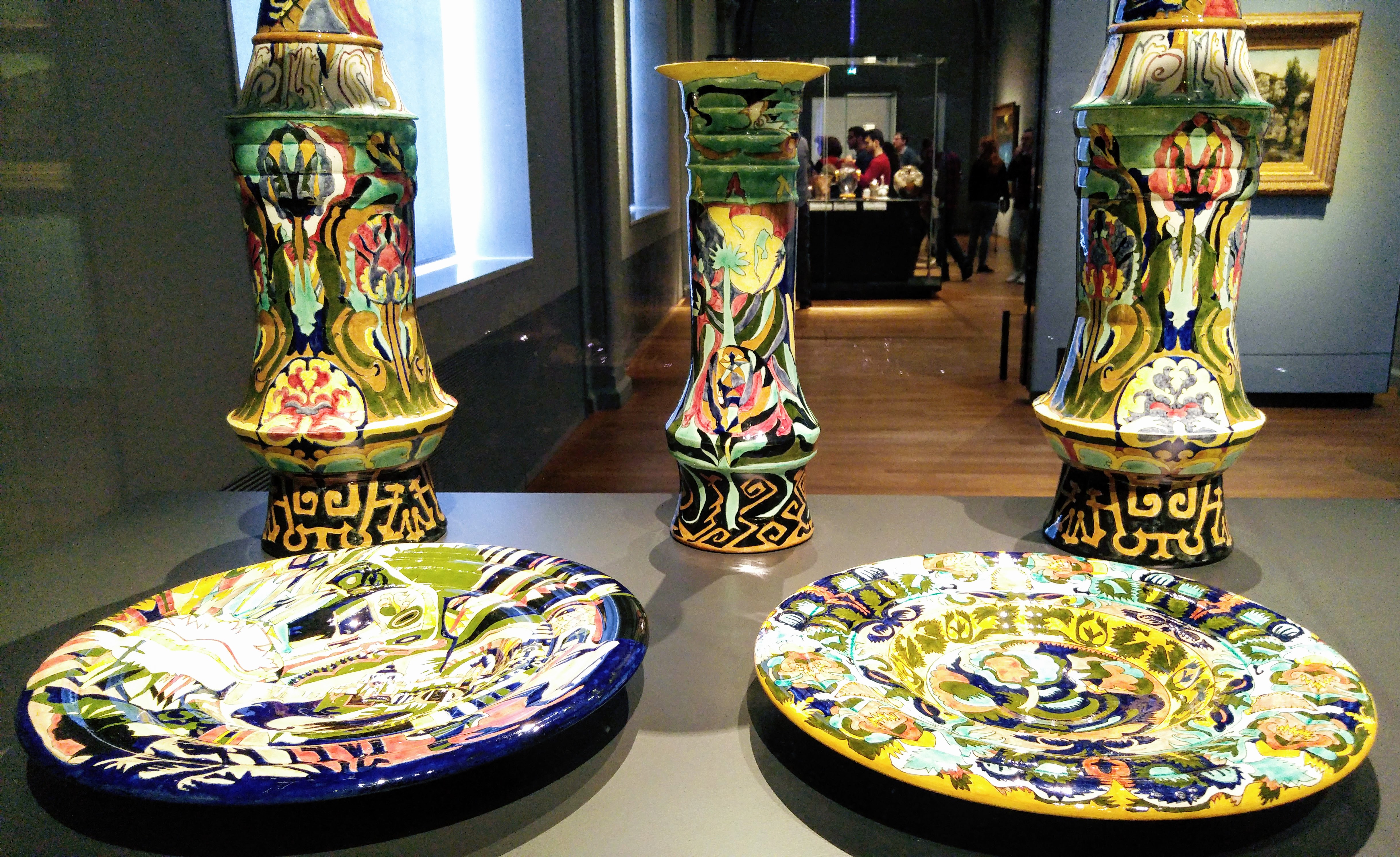 Theo Colenbrander was the star designer of the porcelain factory Rozenburg in the 80s. Sometimes the overall design is difficult to grasp at once, as the stylized landscape with Middle Eastern architectural motifs. Although Colenbrander’s designs didn’t sell well, they were highly esteemed in the art world.