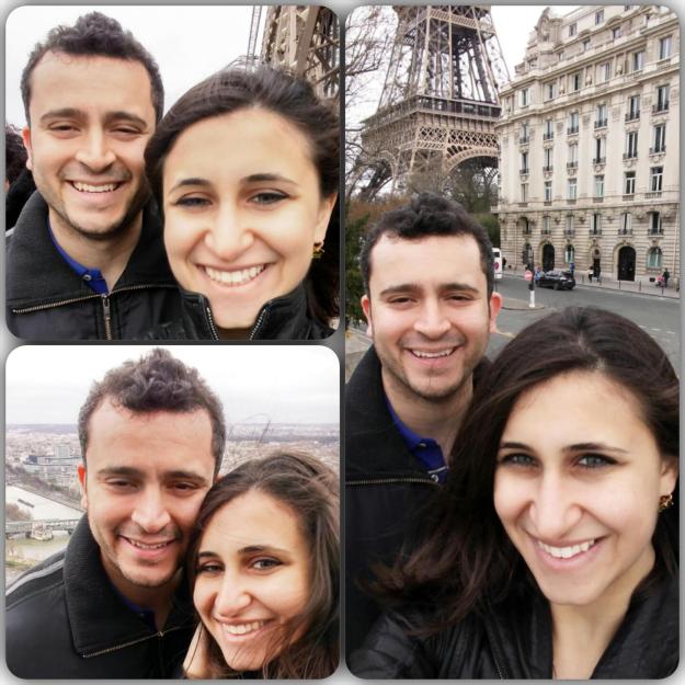 I couldn’t determine in which photo both of us looked good. So I just made a collage of all three photos in or around the Eiffel Tower: